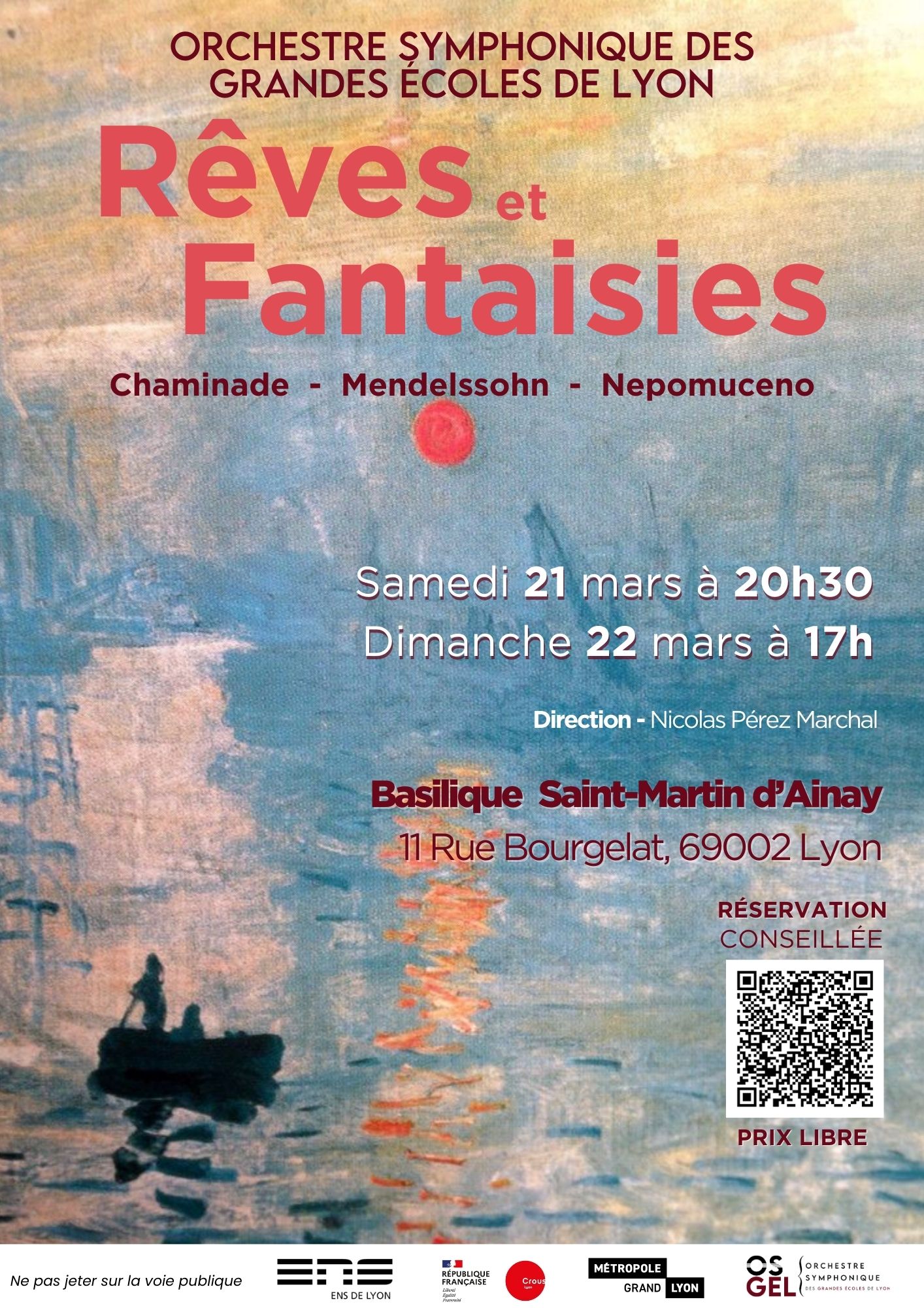 Retrouvez-nous pour nos concerts de printemps à la Basilique Saint-Martin d’Ainay le samedi 21 mars à 20h30 et le dimanche 22 mars à 17h (11 rue Bourgelat, 69002 Lyon). Un programme entre Rêves et Fantaisies: Callirhoë de Cécile Chaminade, Meeresstille und glückliche Fahrt de Felix Mendelssohn et la Série brasileira de Alberto Nepomuceno. Vous pouvez d'ores et déjà réserver votre place sur notre billetterie